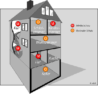 Montiert werden Rauchwarnmelder dort, wo ihr Alarmsignal von allen Bewohnern gehört werden kann, direkt unter der Decke und möglichst in oder nahe der Raummitte.